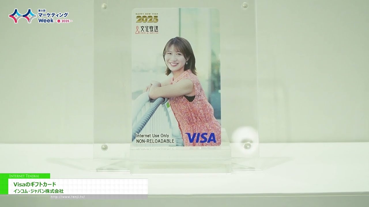 عرضت شركة Incom Japan K.K. في أسبوع التسويق الثامن (ربيع 2025) بطاقات هدايا Visa ورموز الهدايا الخاصة بها. تتميز البطاقات بقبولها الواسع في أكثر من 100 مليون متجر محليًا وعالميًا وعبر الإنترنت. تركز الشركة حاليًا على تطوير تصاميم أصلية لبطاقات Visa الإلكترونية، وهي رموز هدايا رقمية حصرية للاستخدام عبر الإنترنت. تسعى Incom Japan K.K. إلى التعاون لإنشاء تصاميم مخصصة بالكامل لشخصيات أو علامات تجارية مشهورة، وتدعو المهتمين إلى التواصل معها.